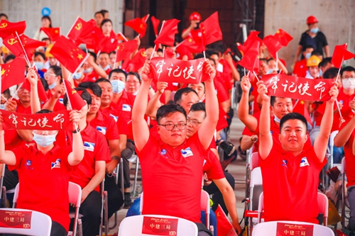 6月15日,由湖北广播电视台与中建三局集团有限公司联合主办的红色音乐主题党课在湖北广电传媒基地举行,湖北长江广电置业有限责任公司(基建办)职工、中建三局集团有限公司工程总承包公司职工及工友、各参建单位的400多名共产党员高唱国歌,重温入党誓词,现场气氛激昂而又庄严。