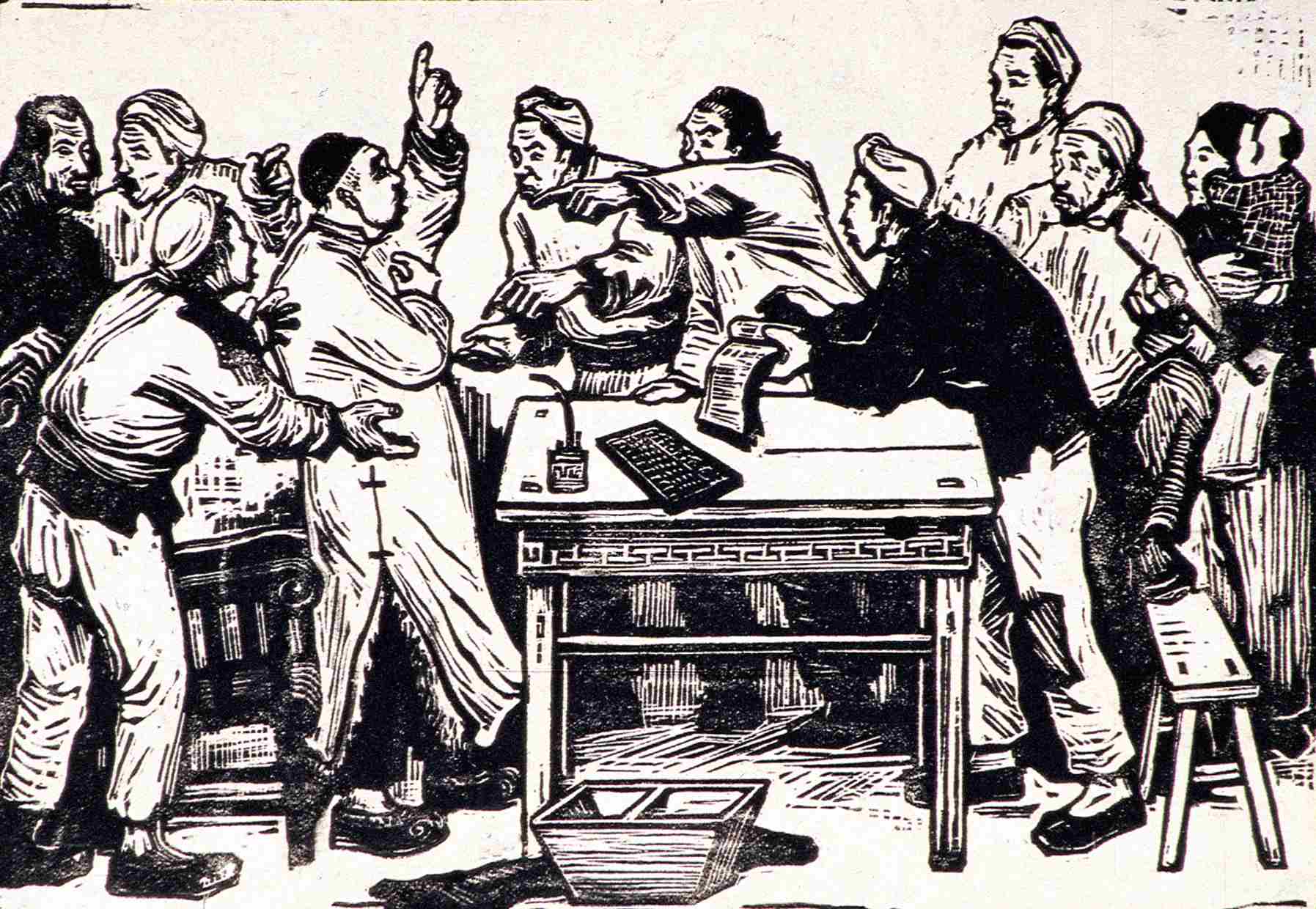 ▲ 减租会(版画) 13.5×20厘米 1943年 古元 中国美术馆藏