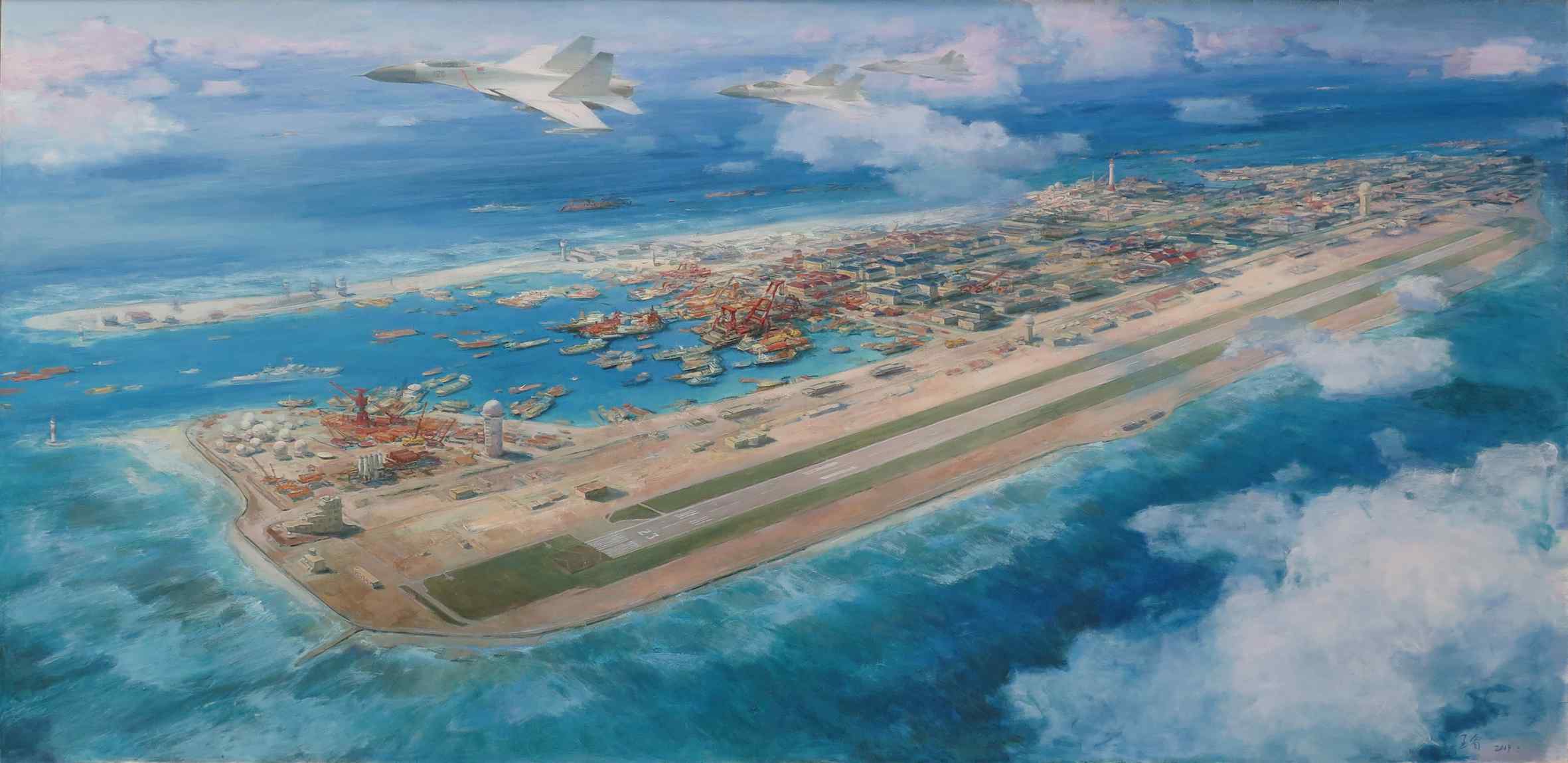 ▲ 南海建设交响曲(油画) 185×380厘米 2019年 王睿 国家主题性美术创作项目