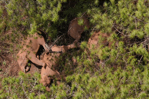 象群中有两头小象偷吃酒糟醉酒而掉队