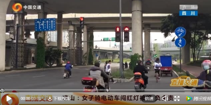 女子骑电动车闯红灯,被撞倒仍需负全责