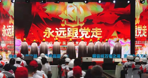 齐声高歌致敬百年风华红旗飘飘,党心昭昭。伟大的中国共产党,即将迎来百年华诞,活动当天,来自滇中引水建设一线的100多名工程建设者,用豪迈的歌声、优美的舞姿,歌唱伟大的祖国,歌唱伟大的中国共产党。