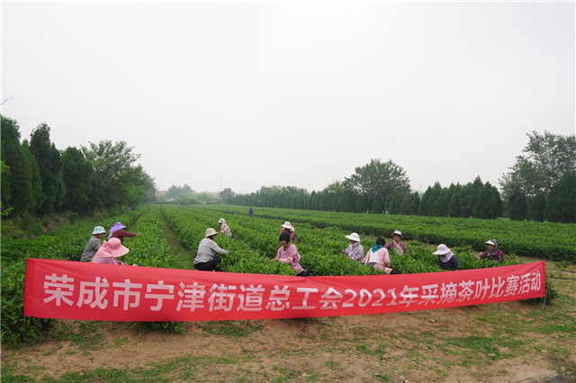 75名采茶工趁着露水尚在,两人一排茶树,按照“两叶一芽”的标准激烈地进行比拼。比赛限定了两个小时的采摘时间,以采摘茶叶的质量和重量为考核标准。最终,来自安徽的郑春妹以1.4公斤的成绩获得茶叶采摘竞赛一等奖。这是荣成市总工会以农业技能竞赛助力乡村振兴的缩影。