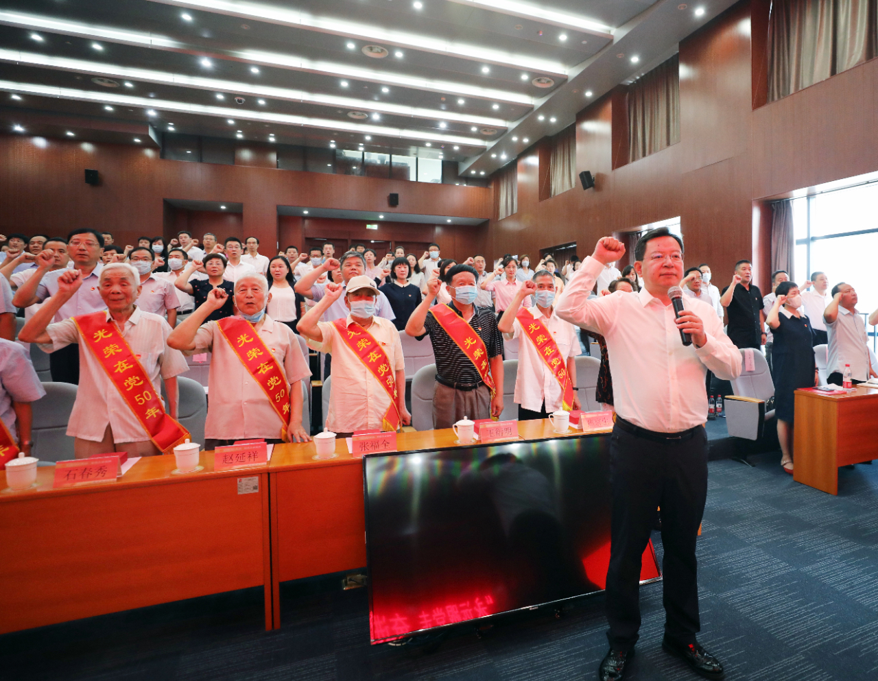 活动包括庆祝活动、学习和专题党课两个部分。在庆祝活动中,全体党员重温了入党誓词,向西安市总工会系统“光荣在党的50年党员”代表颁发了荣誉奖章,10名年轻干部诵读了《永远的旗帜、永远的中国梦》。