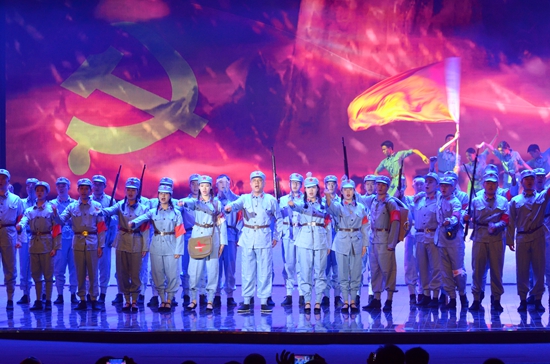 演出分序曲、开天辟地、改天换地、翻天覆地、惊天动地和尾声6个部分,生动再现共产党人“革命理想高于天”崇高品质,热情讴歌了党走过的光辉历程和取得的丰功伟绩,展现了新时代产业工人传承弘扬劳模精神、劳动精神、工匠精神。