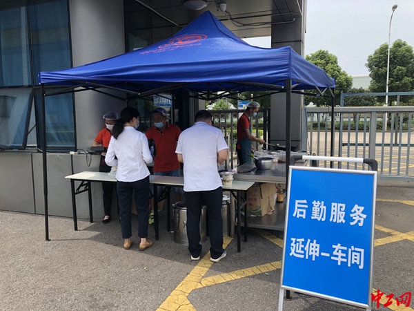 每日调制的酸梅汤、甜橙汁等冰镇饮料,全天近45桶冷饮供员工畅饮;为减少职工“三公里”的奔波,把午餐开进车间的“流动食堂”;休息期间,冰棍可以随时“来一根”;感觉不适,降暑药品由班组长迅速送达;每个工位还有配备的工业风扇……在单位的帮助下,一线职工与高温打起“阵地战”,一边坚守岗位,一边健康状态满满。