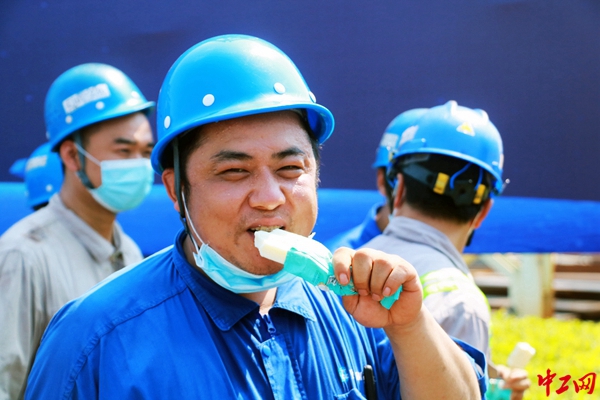 一线职工吃到防暑降温的西瓜、冰棍、冷饮,乐开了花