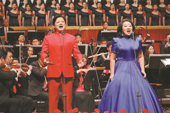 音乐会上,著名男高音歌唱家、香港歌剧院艺术总监莫华伦携手著名女高音歌唱家崔峥嵘合唱了主旋律歌曲《不忘初心》。