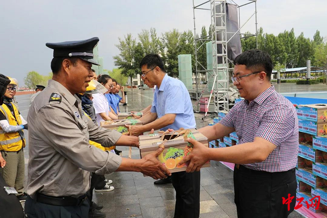 中工网讯 6月28日,内蒙古鄂尔多斯市伊金霍洛旗小微企业工会联合会开展“八大群体”送清凉慰问活动,为长期奋战在一线的货车司机、送餐员、家政员、快递员、保安员等送去工会组织的关怀,感谢他们为城市经济社会发展作出的贡献。