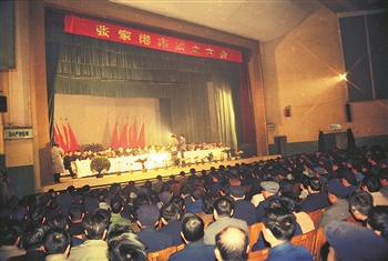 图①:1986年12月1日,张家港市成立大会在杨舍镇大众影剧院召开。