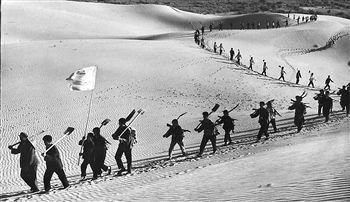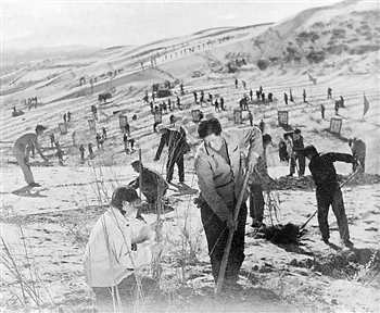 ①1973年,靖边杨桥畔,造林人向沙漠进军。