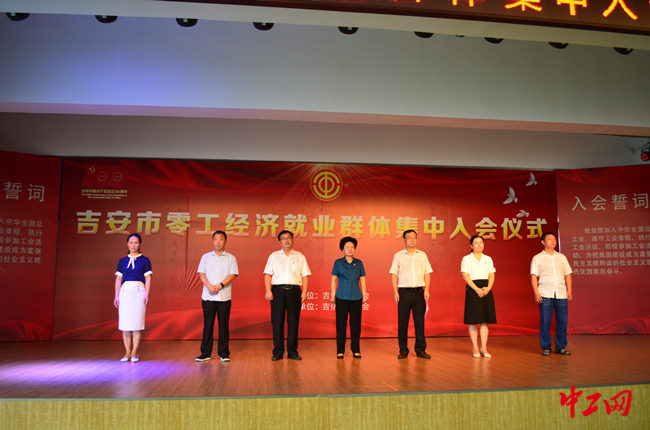 吉安市快递行业工会联合会快递员代表,美团、饿了么公司外卖配送员代表,市家庭服务行业工会联合会家政服务员代表,以及物流货运司机、网络主播、网约车司机等零工经济就业群体会员代表200余人参加集中入会仪式。