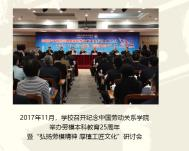 2017年11月,学校召开纪念中国劳动关系学院举办劳模本科教育25周年暨“弘扬劳模精神 厚植工匠文化”研讨会