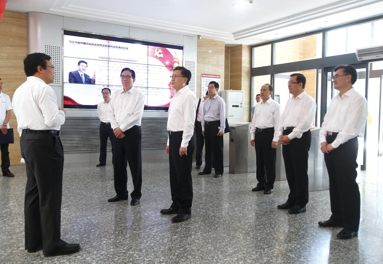 2018年5月15日,时任全国总工会党组书记、副书记、书记处第一书记李玉赋和教育部党组书记、部长陈宝生一行到北京校区调研指导工作,看望劳模学员