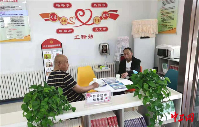 “关爱一个人 温暖一座城”,在专门为环卫工人、园林绿化工、交通警察、市政养护工、出租车驾驶员、快递外卖员等户外劳动者提供服务的工驿站内,饮水机、微波炉、医药箱、多功能电源插座、桌椅等必备设施一应俱全,可满足该群体饮水供给、纳凉取暖、餐食加热、休息如厕等实际需求,营造优质、舒适、暖心的港湾。