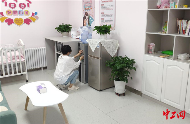 小巧精制的茶几、干净整洁的沙发,淡粉色的墙壁上张贴母乳喂养宣传画,操作台上摆放着新鲜绿植,婴儿床、收纳柜、消毒机、温奶器、电冰箱等设施一应俱全……服务中心新增的爱心妈咪小屋,可为女性职工解决孕期、哺乳期等特殊生理阶段的实际困难。温馨、舒适的妈咪小屋传递出浓浓的人情味,给职场妈妈们营造了一个私密、安全、卫生、舒适的休息场所。