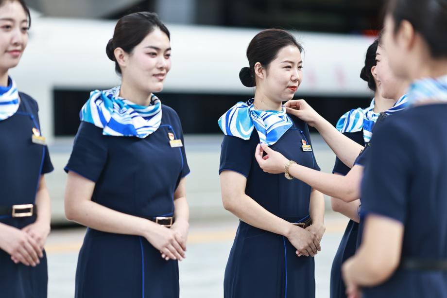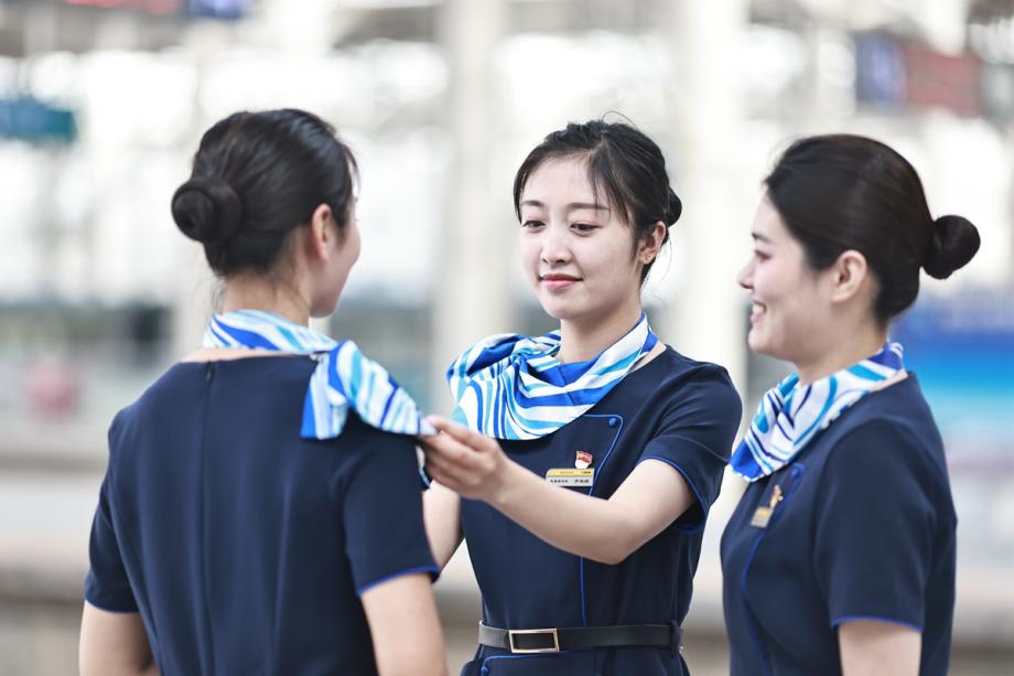 央视网消息:近日,中国铁路沈阳局集团有限公司长春客运段动车一队组织职工开展礼仪培训,对基础礼仪、职业形象、服务技巧等内容进行训练,切实提高动车组列车乘务员服务水平,为乘坐旅客提供标准、贴心的服务。(苏志刚 谭旭 摄)