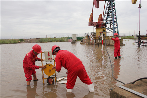 采油四区员工们开动脑筋,自主研发防触电移动遥控式收水车,采用全密封防触电配电箱并配备升降功能,能够双重防漏电,并且一拉就走,无需人员搬运,接电操作即可启动,大大降低触电、溺水风险,还使井场防洪排涝效率提高2倍,间接提升经济效益100万元。(邢荣霞)