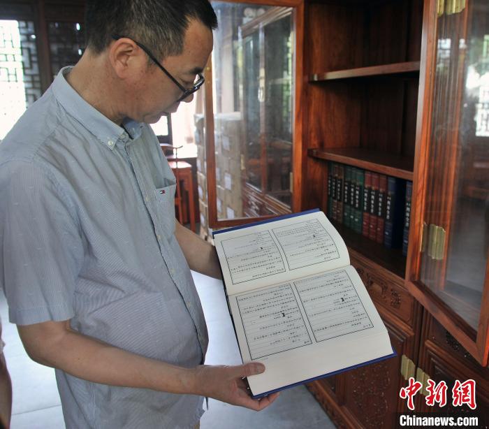 图为杨绍斌翻阅《文澜阁四库全书》。 张伟 摄