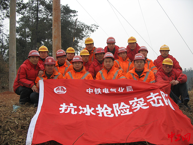 张云杰(前排右二)带领团队参与2008年南方抗冰抢险工作