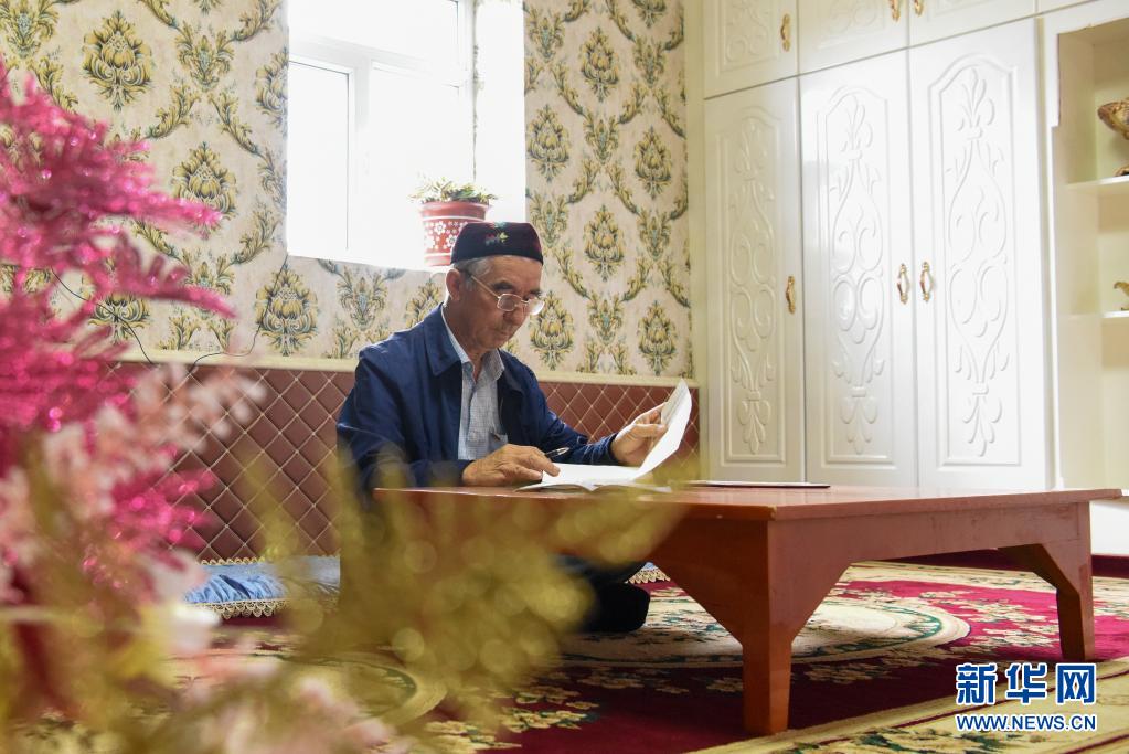 在新疆伊宁县温亚尔镇布力开村,买买提江·吾买尔在家学习(6月12日摄)。新华社记者 丁磊 摄