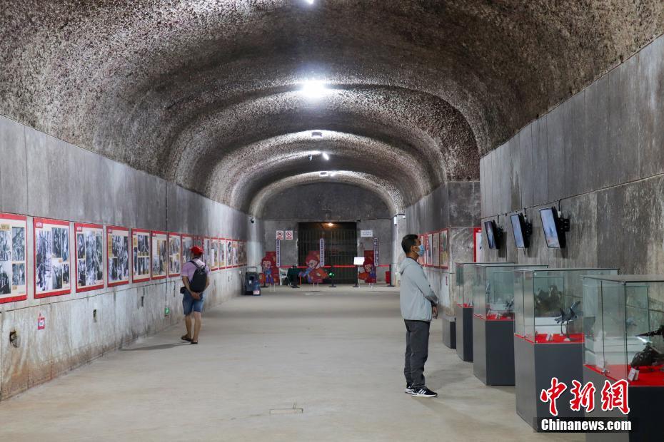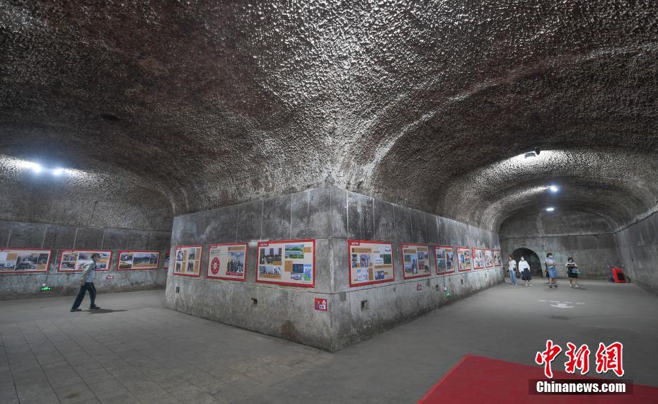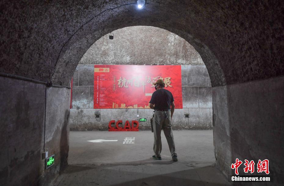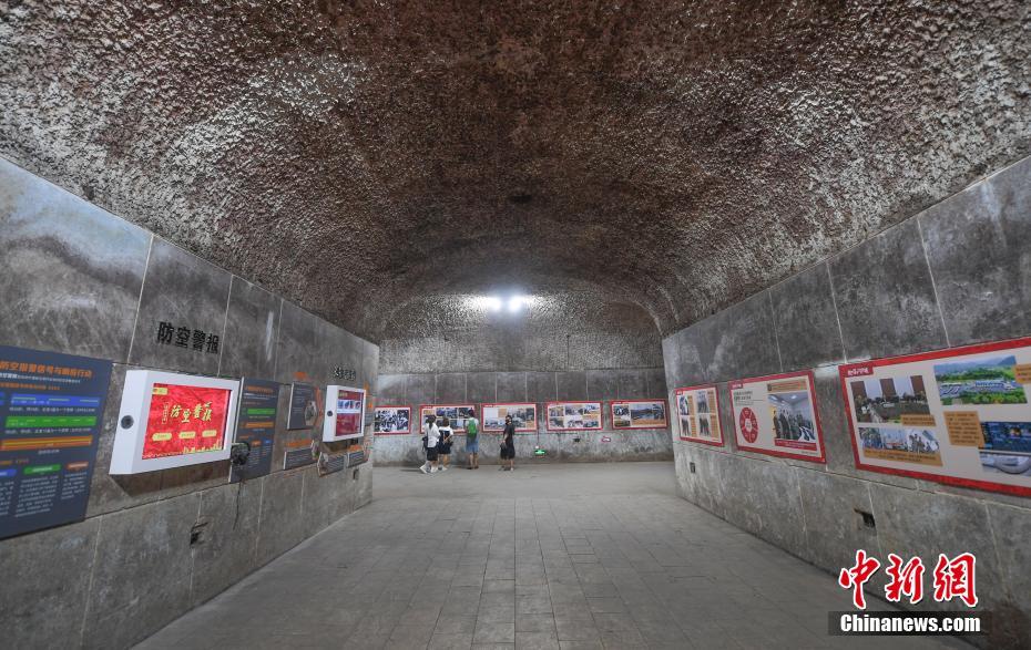 7月12日,浙江杭州,市民进入防空洞参观展览。近日,浙江杭州在一处防空洞内举办杭州百年防空史展,大量的图片和实物等展出,讲述当地防空发展历史。 中新社记者 王刚 摄