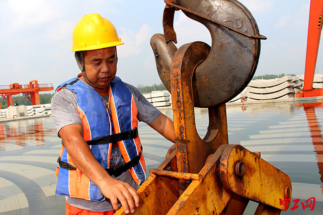 炎炎夏日来临之际,恰逢中铁十四局房桥公司黄河建筑科技有限公司大干时节,为保障现场施工生产顺利进行,一线的电工们每天坚持上午下午两次检查龙门吊等大型设备,他们爬上龙门吊最高处,感受着似火骄阳,检查下来后,汗水湿透衣衫,项目部也及时为一线工人送上冰镇矿泉水,夏日虽炎热,心里却凉爽。