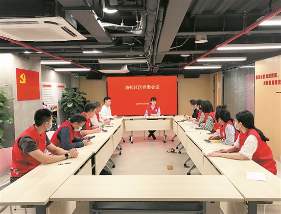 在渔邨,有一个基层治理综合分析会,由社区党委会定期组织召开,协商解决社区治理难题,并建立“居民点单、部门统筹、按需上菜”普法共建机制,让法治成为社区共识和基本准则。社区内一些业主、租户曾在空地摆麻将桌,引发多次邻里纠纷。居民找到社区党委,通过渔邨社区“基层治理综合分析会”协调,矛盾得到了化解。