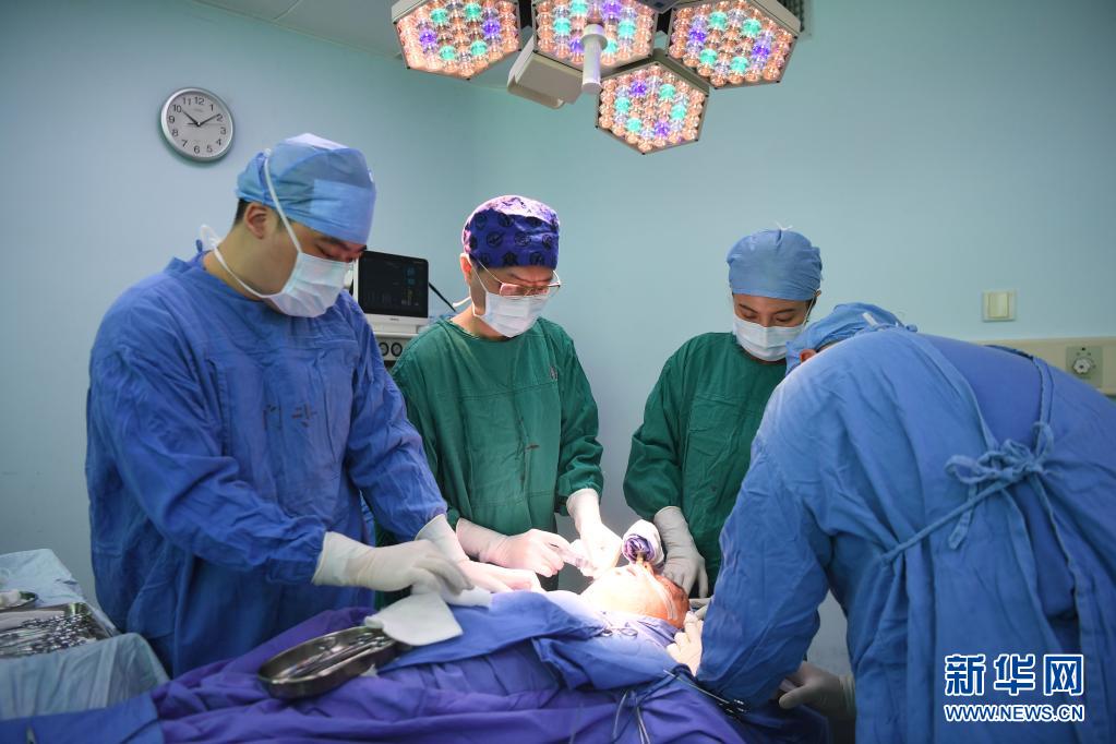 7月14日,南方医科大学南方医院整形外科主任胡志奇(左二)为“面具男孩”周涛做手术。