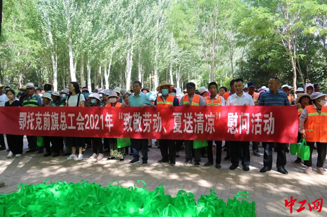 中工网讯 近日,内蒙古鄂尔多斯市鄂托克前旗总工会开展“致敬劳动 夏送清凉”慰问活动。