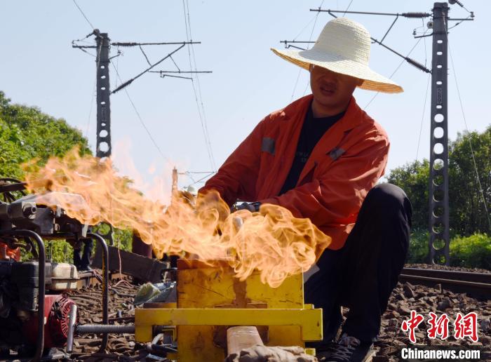 原标题:铁路工人三伏天里换轨忙