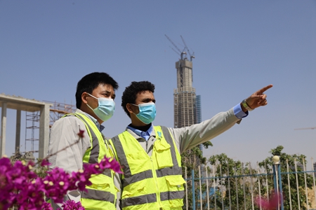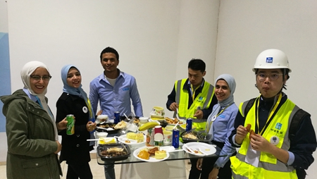 在仪式正式举行的前一天下午,Ammar表达了想利用晚上的时间提前排练的想法。Ammar和来自中国的女主持人一遍遍配合,如何开场、如何走台……当所有问题解决,时间已经到了夜里九点。第二天,封顶仪式成功举行,受到了业主、监理的一致好评。仪式结束后,当所有人都在相互祝贺时,我发现Ammar的眼眶红红的,我知道这是释放巨大压力后的泪水。