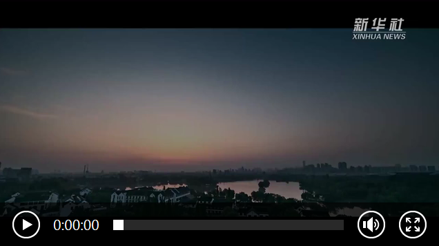 这是6月25日在南京市河西新城中轴线拍摄的庆祝建党百年主题灯光秀(无人机照片)。新华社记者 李博 摄