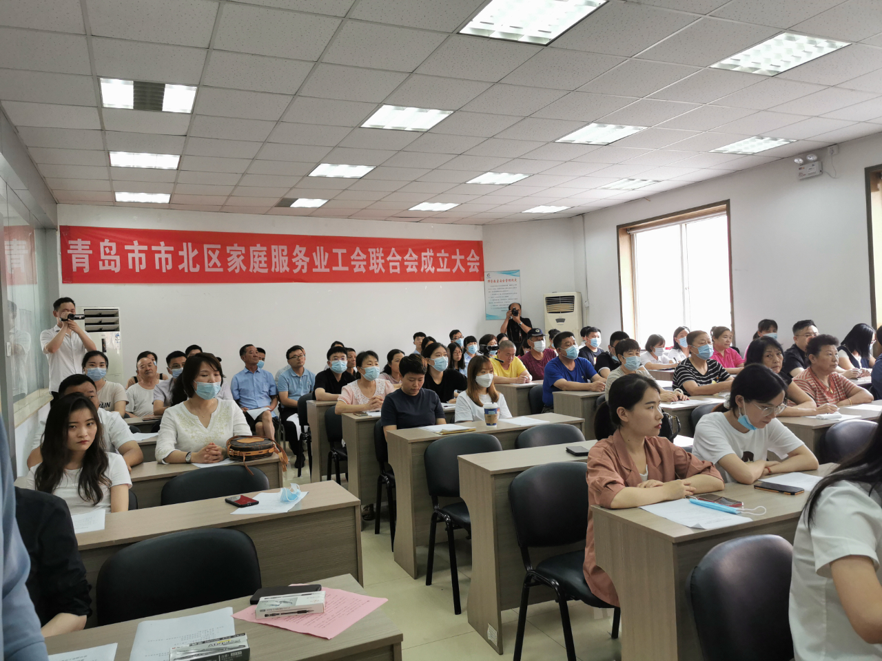 近日,青岛市市北区家庭服务业工会联合会召开第一次会员代表大会。在青岛市家庭服务业促进会会议室,17家家政服务单位,1579名职工通过青岛市家庭服务业促进会平台加入了工会组织。
