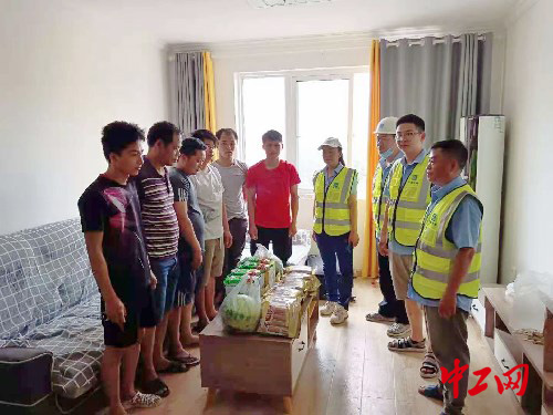 21日一早,中建二局装饰公司深圳分公司郑州金水府项目部得知周边小区高层住宅楼电梯故障,停水停电,高层住户不方便采买食物,项目青年志愿者们主动担起责任,“踏水”采购,徒步爬楼,上门为高层住户送去食品、牛奶等,在暴雨和洪水中架起一座便利“爱心桥”。(吕芳)