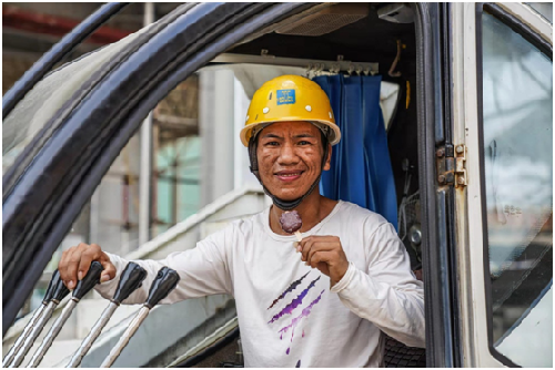 在中建二局华东公司合肥滨湖国际会展中心二期项目现场,吊车工人在干活间隙吃冰棍解暑。李福凯 摄