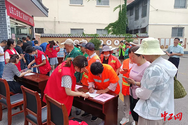 曲阜市总工会负责同志向参加活动的干部职工,并通过大家向曲阜全市奋战在一线的广大职工群众致以崇高的敬意和亲切的问候,此次活动,曲阜市总工会为户外劳动者准备了毛巾、矿泉水、清凉油、香皂等防暑降温物品,活动采取线上线下相结合的方式,广大户外劳动者可下载注册“齐鲁工惠”APP,通过核销清凉券、扫描活动二维码、现场登记的方式领取清凉物品,活动将持续到7月30日。随后,曲阜市总工会到其他一线劳动者工作场所开展了慰问活动,继而拉开了2021年“送清凉”序幕。