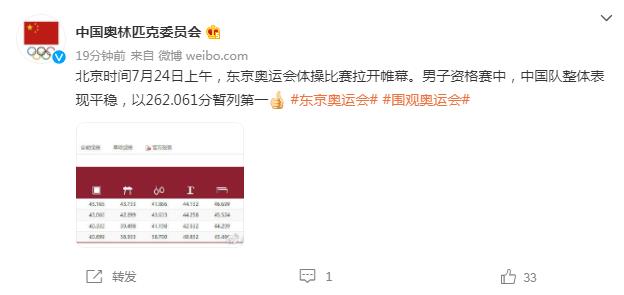 北京时间7月24日上午,东京奥运会体操比赛拉开帷幕。男子资格赛中,中国队整体表现平稳,以262.061分暂列第一。