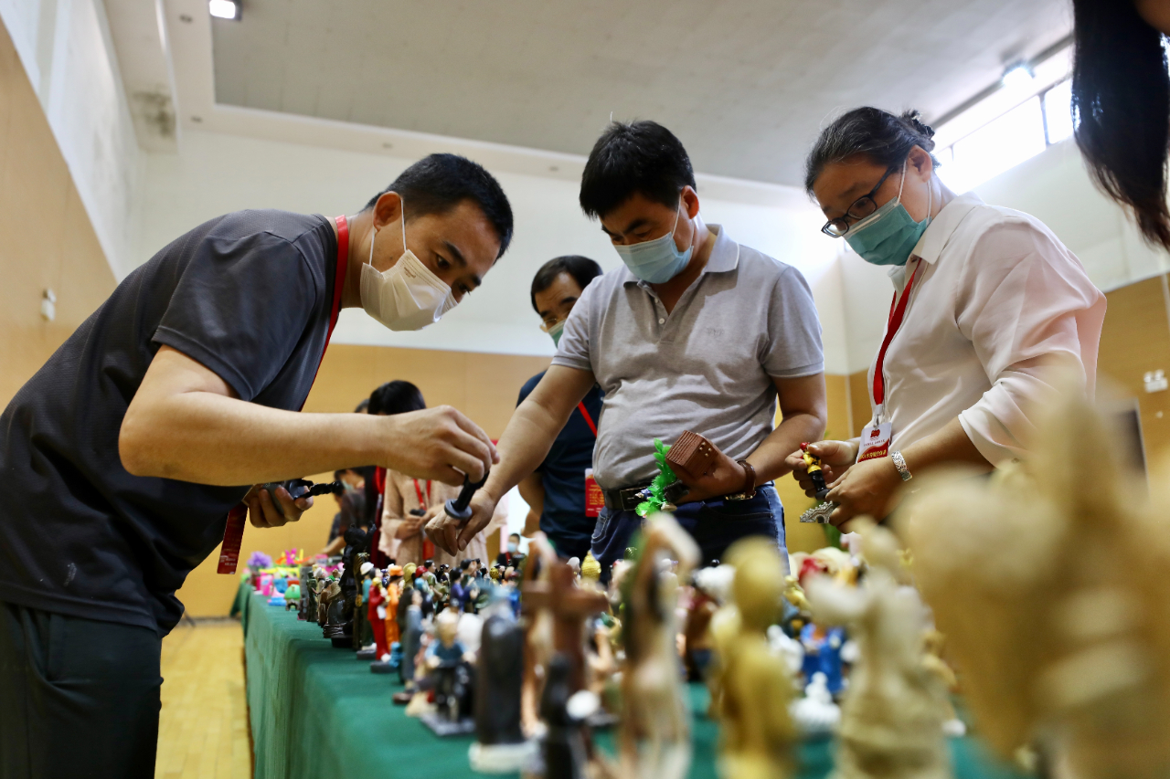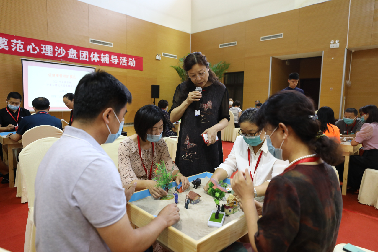 7月24日下午,体验团体沙盘心里辅导,劳模们正在挑选摆放在沙盘上的物品。