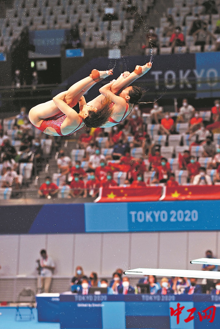7月25日,王涵、施廷懋拿下女子跳水双人3米板项目冠军。工人日报—中工网特派记者 杨登峰 摄影报道