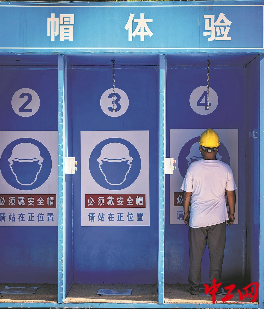 原标题:记者走访多处工地,发现不少工人未佩戴安全帽,用于教育工人提升安全意识的“体验屋”形同虚设——(引题)
