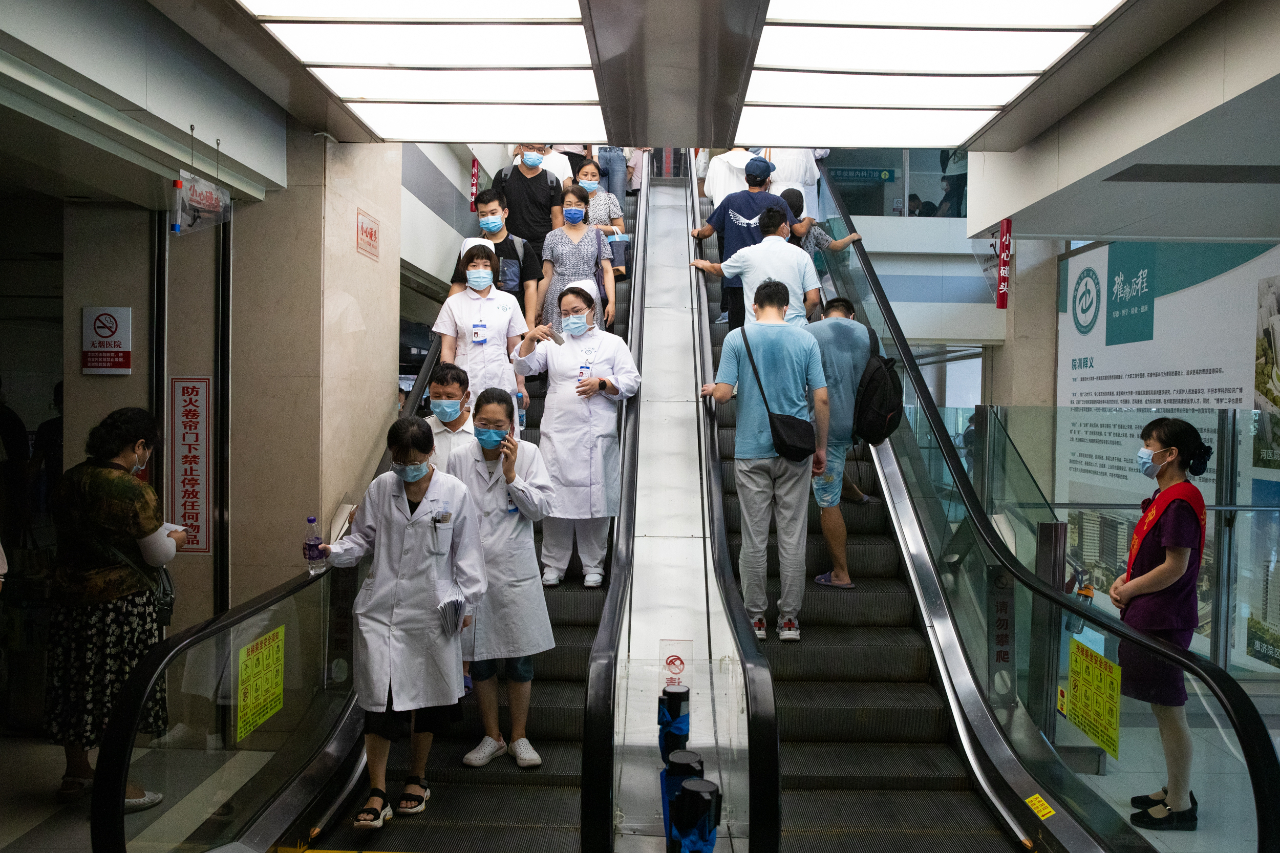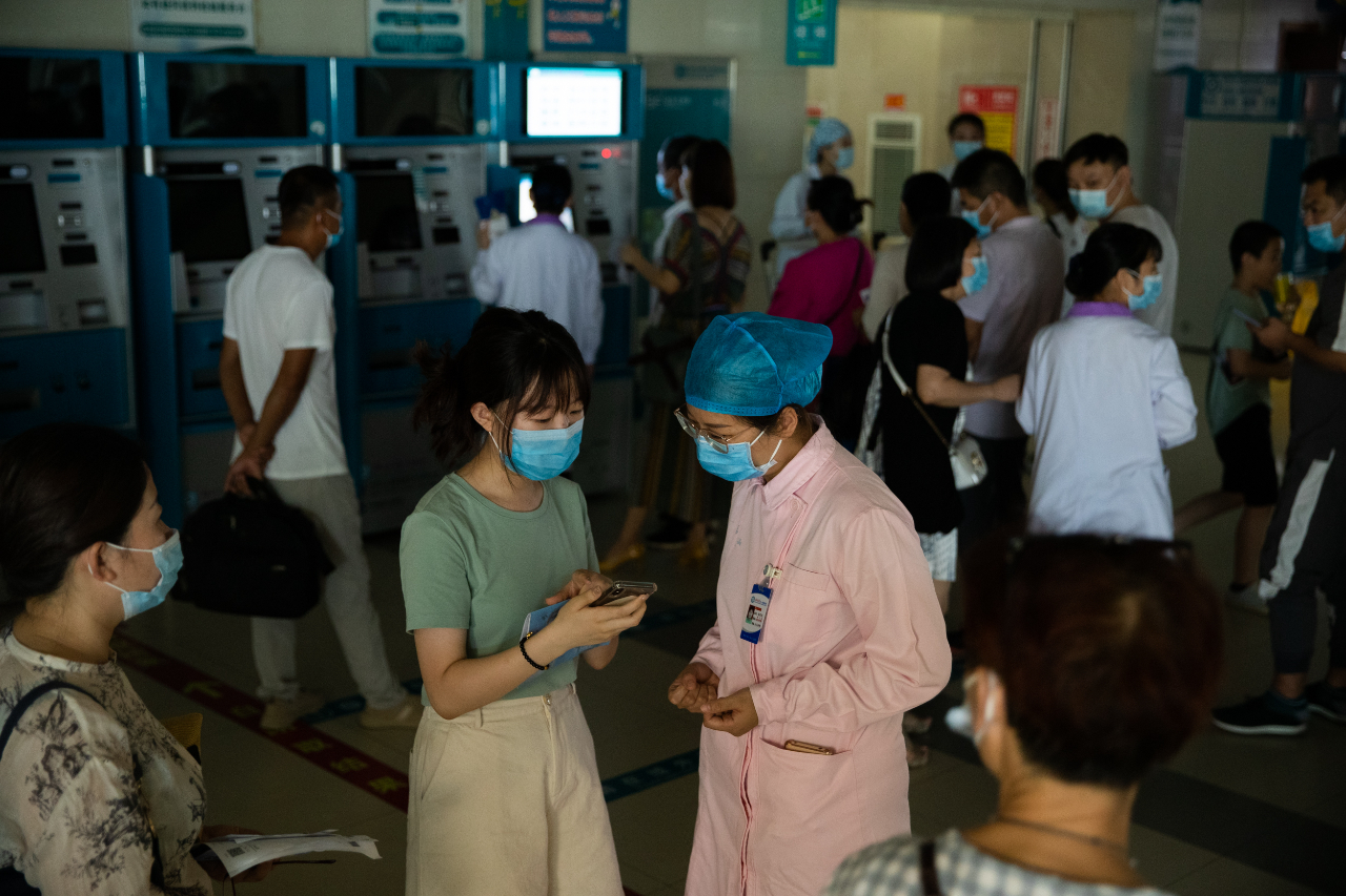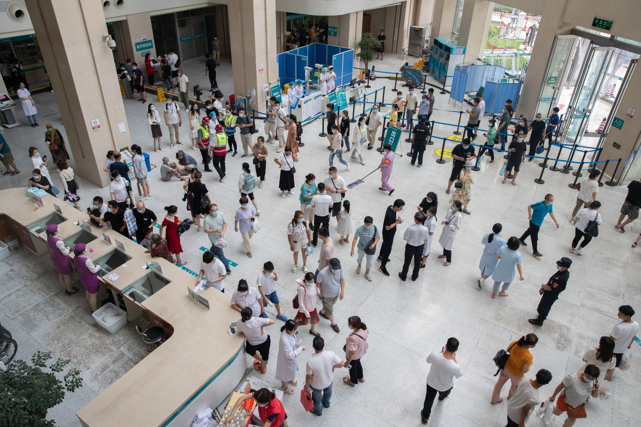 7月26日上午,郑大一附院门诊楼大厅恢复往日景象。