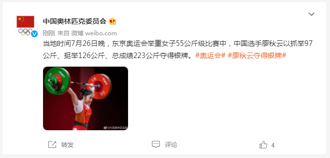 中国奥林匹克委员会官方微博截图