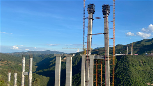 7月25日,由中铁大桥局八公司承建的云南楚雄永大高速控制性工程江底河特大桥索塔顺利封顶。
