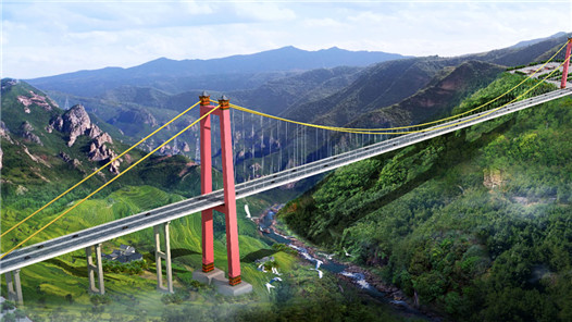 江底河特大桥桥址位于楚雄境内横跨永仁大姚两地,跨越江底河峡谷谷口宽约1085米,大桥桥面距江底河峡谷谷底约为350m,大桥为主跨920m双塔单跨钢箱梁悬索桥。