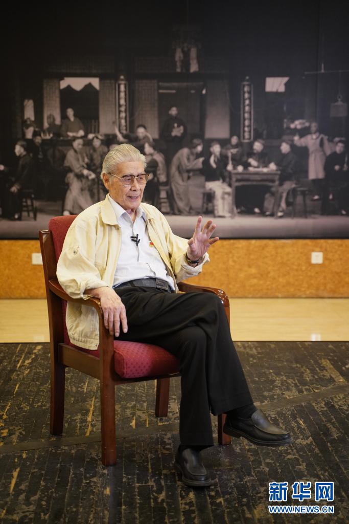 蓝天野在接受采访(6月16日摄) 。新华社发(缑宇 摄)