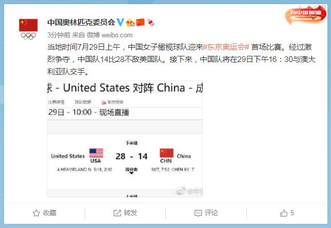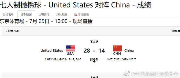 中工网讯 据中国奥林匹克委员会官微消息,7月29日,七人制橄榄球女子小组赛、射箭男子个人1/16淘汰赛中,中国军团战绩如下: