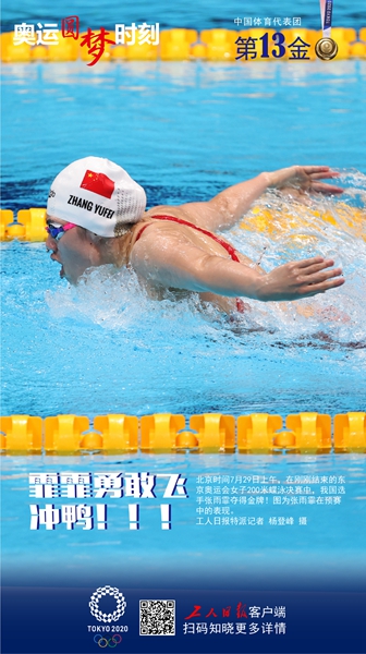 工人日报—中工网特派记者 赵晓展 杨登峰 7月29日,在刚刚结束的东京奥运会女子200米蝶泳决赛中,我国选手张雨霏夺得金牌!此前,张雨霏在女子100米蝶泳项目上取得银牌。