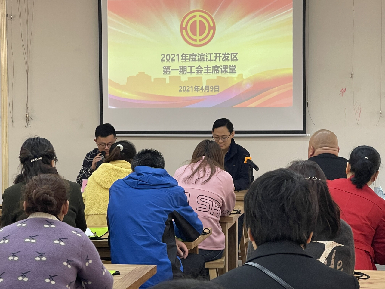 工会主席课堂。滨江开发区总工会组织园区60余家企事业单位的工会干部,两次走进“工会主席课堂”,邀请专家教授讲党史,工会主席走上讲台讲工运史,学党史、学业务,不断增强工会干部的历史意识,培养历史眼光,结合实际工作增强工作方法和举措。目前,各级工会主席纷纷走上讲台,讲党史、感党恩,引领广大职工听党话、跟党走。