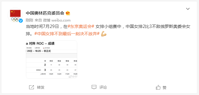 中工网讯 据中国奥林匹克委员会官方微博消息,当地时间7月29日,在东京奥运会女排小组赛中,中国女排2比3不敌俄罗斯奥委会女排。